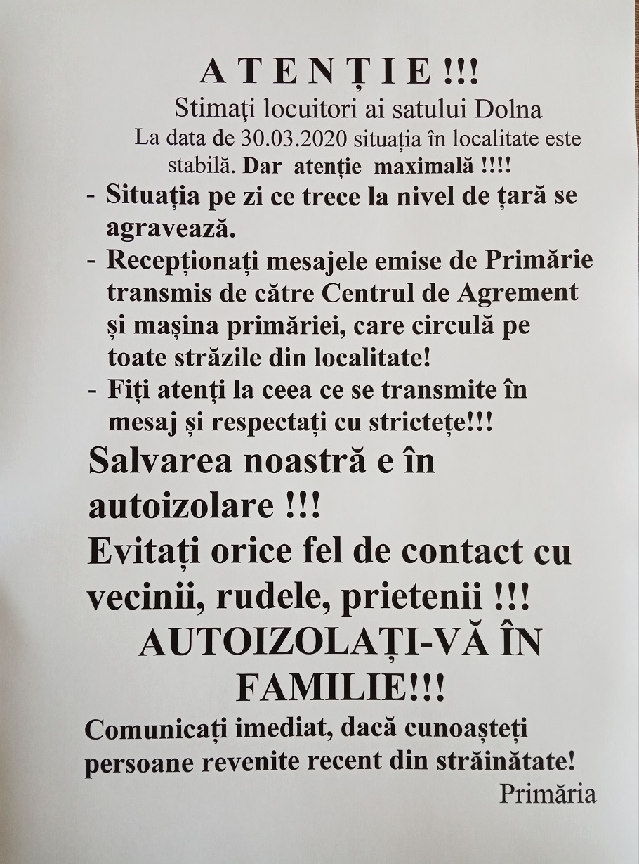 ‼️‼️‼️STAȚI ACASĂ ‼️‼️‼️ Dragi dolneni, aveți grijă de sănătatea Dumneavoastră ‼️ ‼️‼️‼️STAȚI ACASĂ ‼️‼️‼️