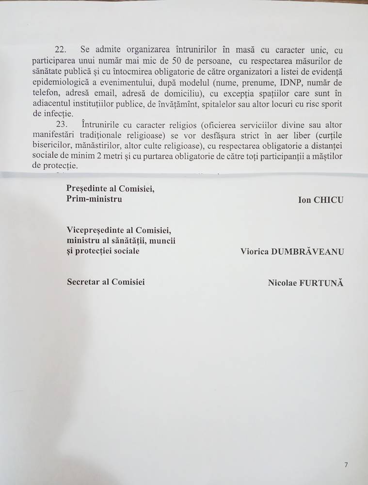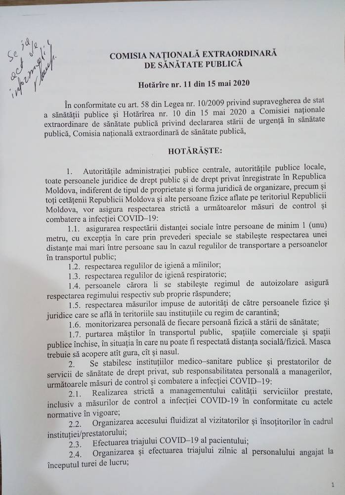 Hotărârea Comisiei Naționale de Sănătate Publică din 15 mai 2020