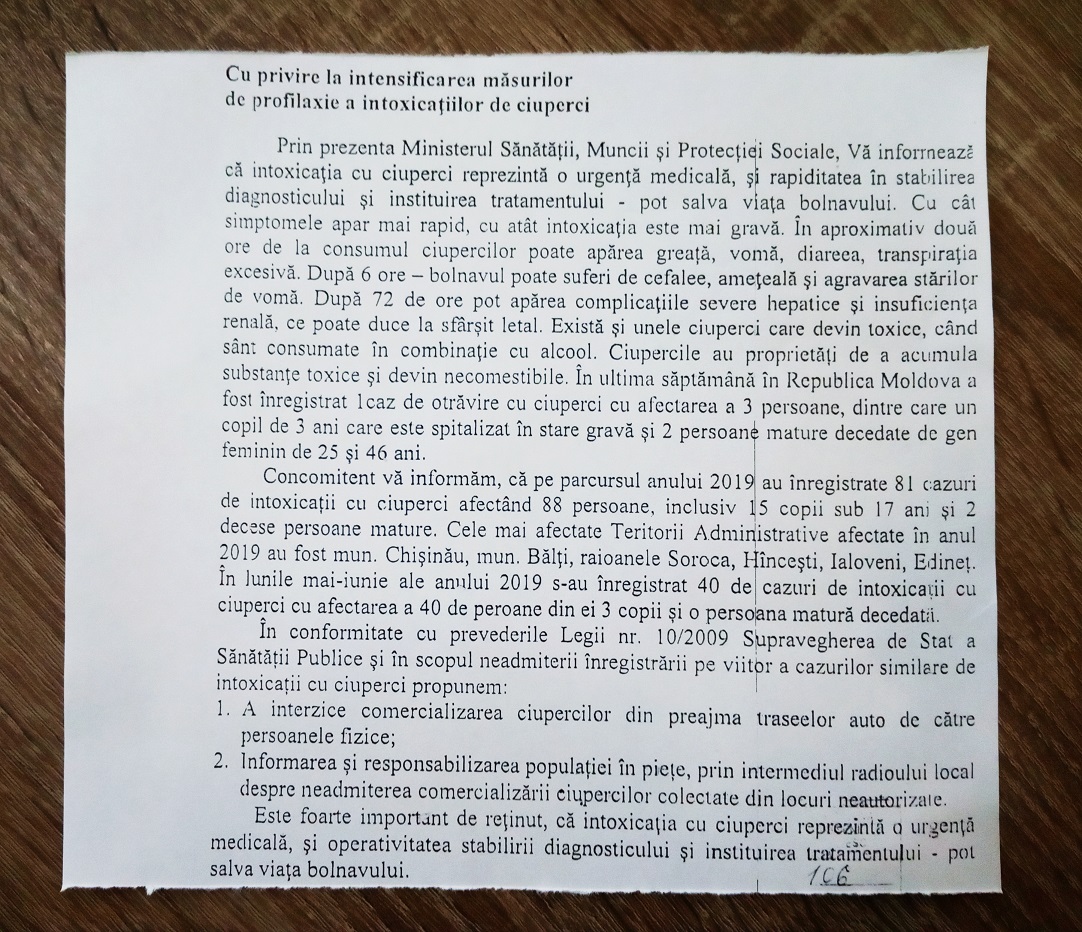 Aviz !!! Spre atenția populației cu privire la intensificarea măsurilor de profilaxie a intoxicațiilor de ciuperci.