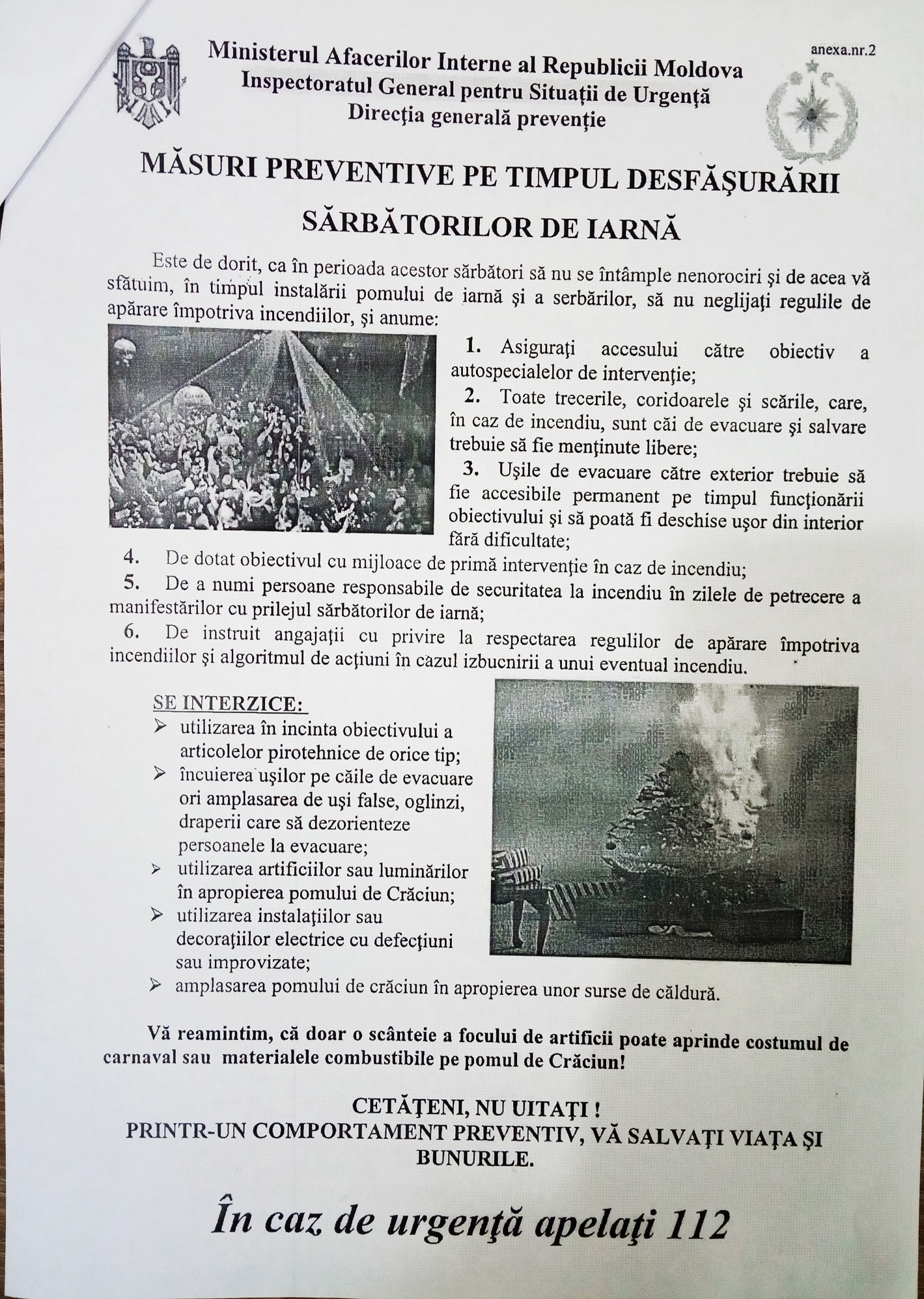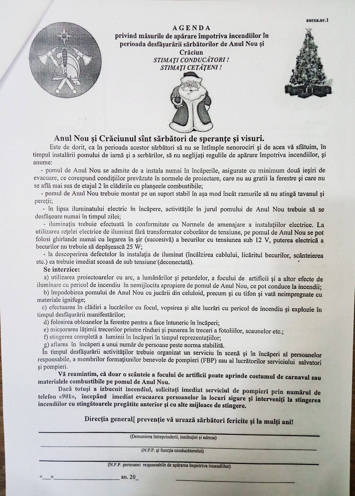 Agenda privind măsurile de apărare împotriva incendiilor în perioada desfășurării sărbătorilor de Anul Nou și Crăciun.