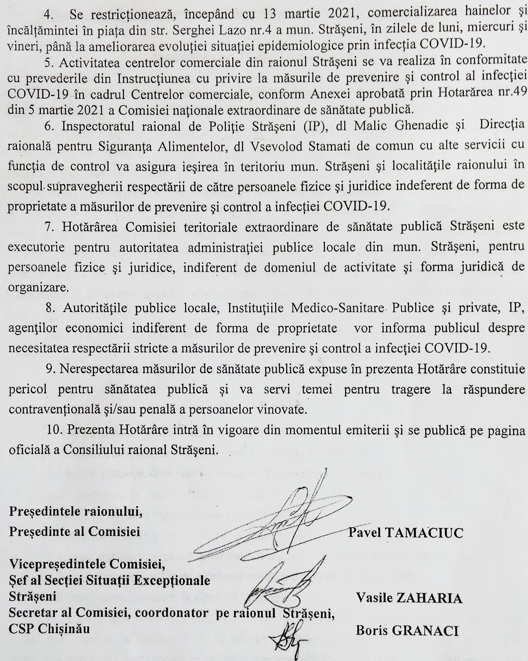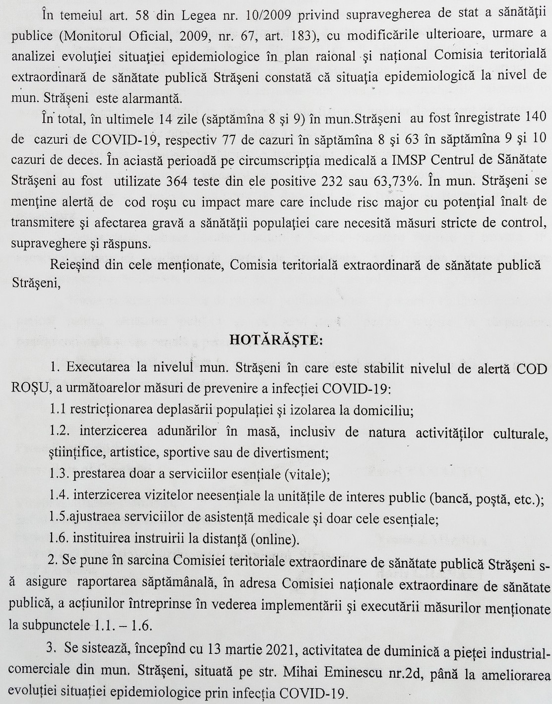 Comisia extraordinară de sănătate publică Strășeni Hotărârea nr.17 din 10 martie 2021