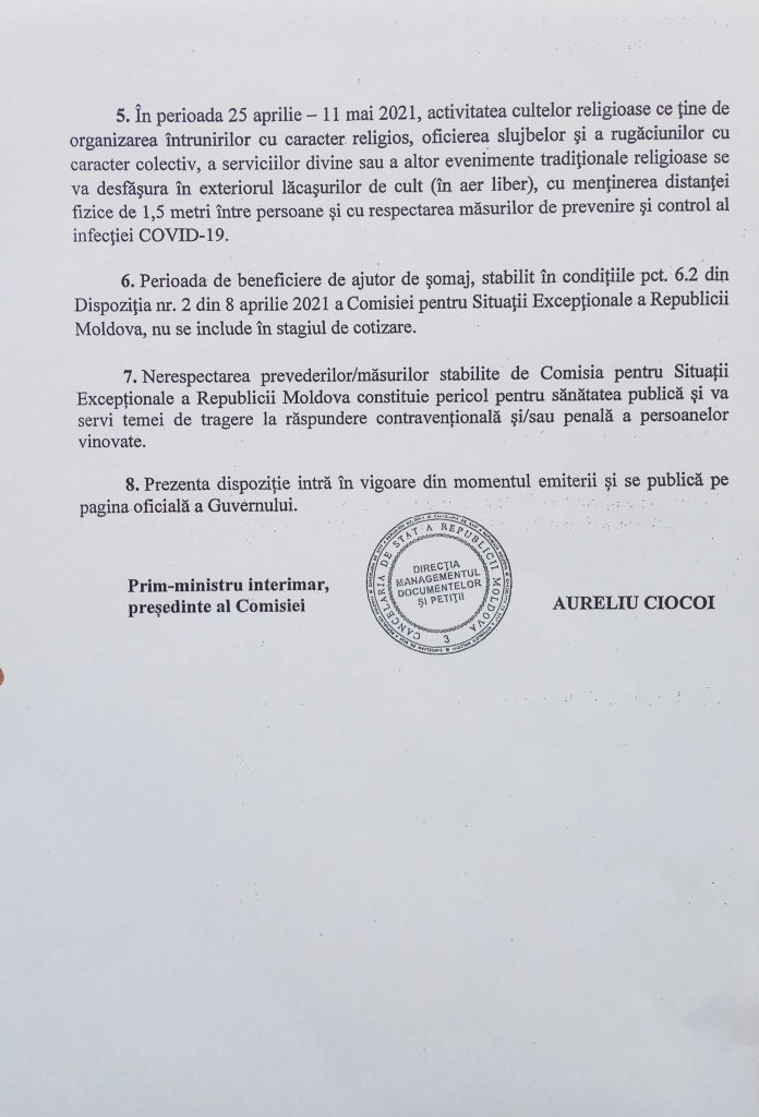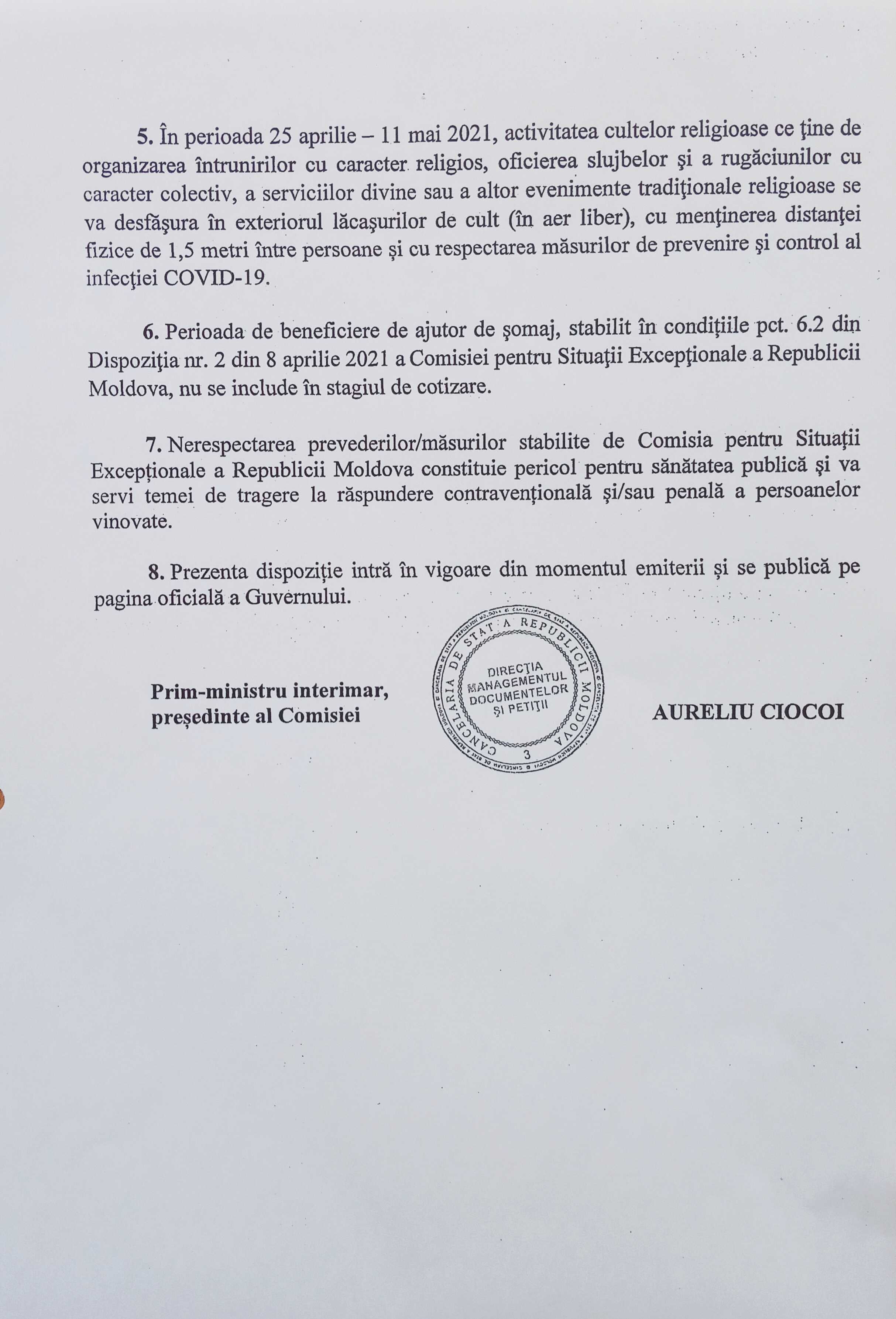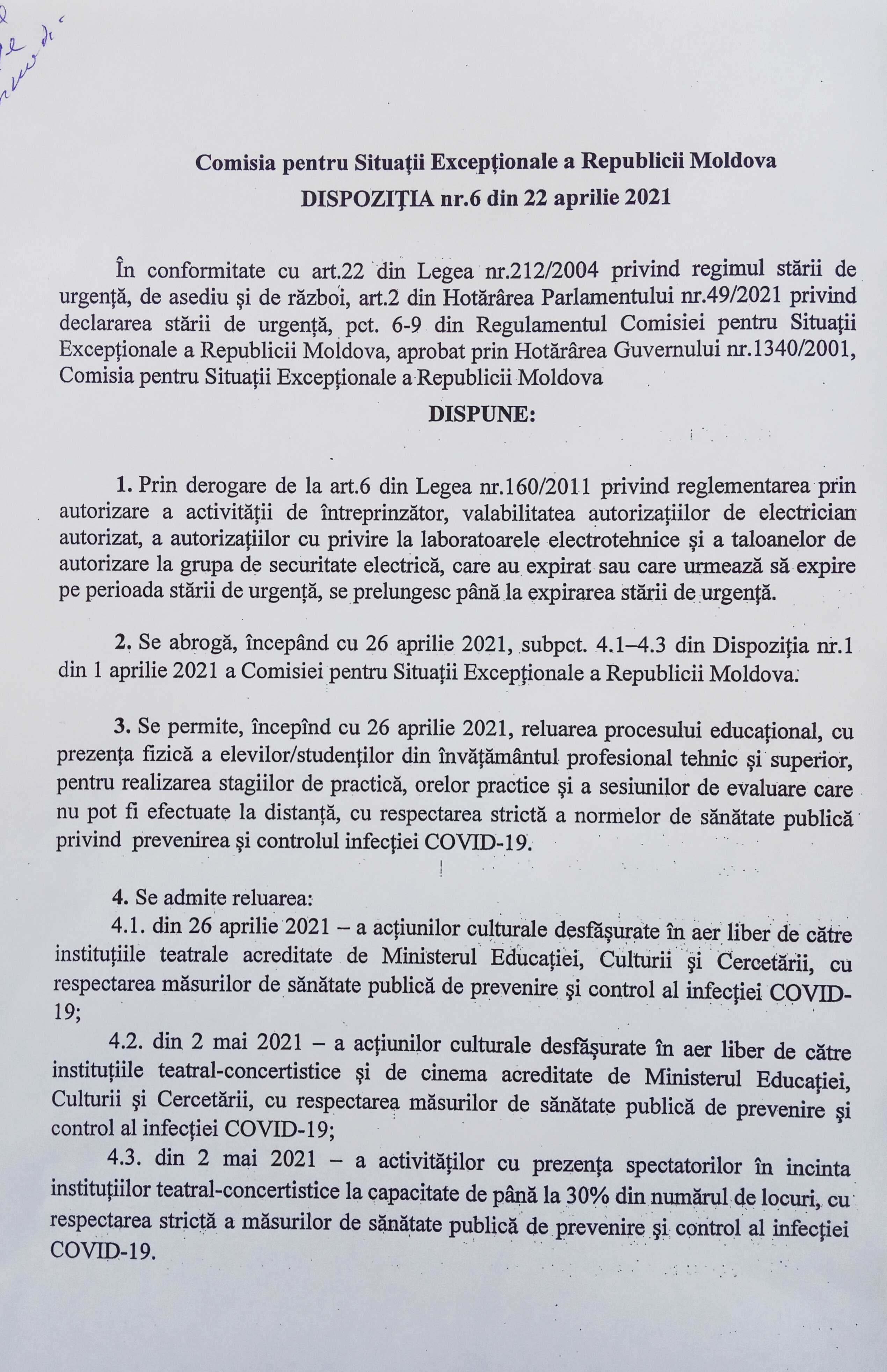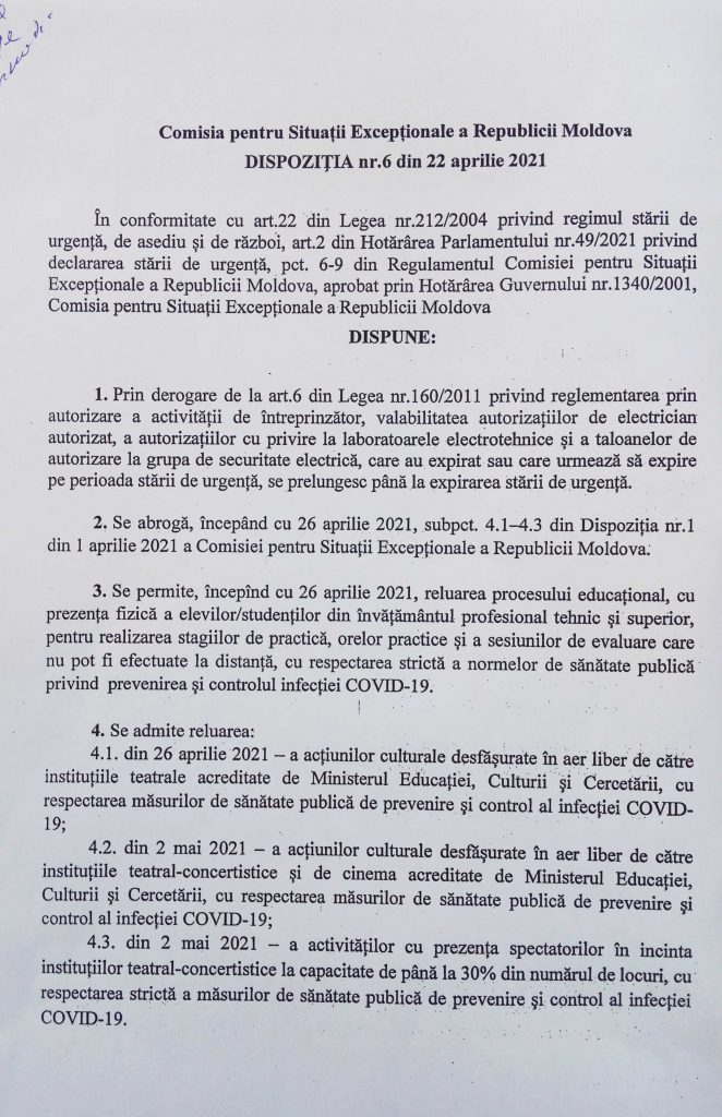 Comisia pentru Situații Excepționale a Republicii Moldova Dispoziția nr.6 din 22 aprilie 2021