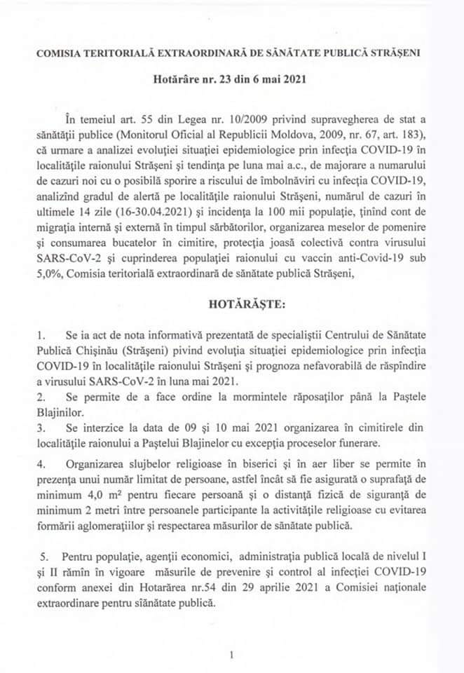 În atenția locuitorilor s.Dolna ! Comisia teritorialā extraordinarā de sānātate publicā Straseni a emis hotārîrea cu privire la ❗INTERZICEREA❗desfāşurārii paştelui blajinilor în toate cimitirile din localitāţile raionului Strāşeni.